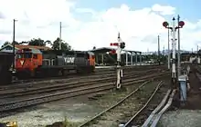 Much of the roundhouse was removed in 1961 in conjunction with construction of the standard gauge line alongside, with the rest of the roundhouse removed in May 1971 leaving just workshop buildings. By 1976 only 125 were employed at the depot, and by the 1980s locomotives were no longer based at the depot. It was officially closed on 8 April 1993.[20] Today it used to stable V/Line trains, as well as being the home of the Seymour Railway Heritage Centre.