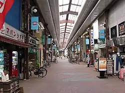 A shōtengai (商店街) is a style of Japanese commercial district, typically in the form of a local market street that is closed to car traffic. Local shōtengai cater to the needs of nearby residents with a diverse mix of small specialty shops and few large retailers. In many older neighborhoods, these streets serve as cultural gathering spaces, holding seasonal festivals, processions, and other events throughout the year.[1] [2]