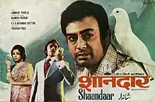 Shaandaar (transl. Resplendent) is a 1974 Indian Hindi-language drama film directed by Krishnan–Panju. The film stars Sanjeev Kumar, Sharmila Tagore and Vinod Mehra. A remake of the 1971 Kannada film Kasturi Nivasa,[2] it focuses on Rajan, who incurs losses as Chander, a man who he helped, prospers. The film was released on 22 September 1974.