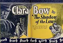 Shadow of the Law is an 1926 American silent crime drama starring Clara Bow as a woman sent to prison for a crime she didn't commit. Directed by Wallace Worsley, the screenplay was written by Leah Baird and Grover Jones and was based on the novel Two Gates, by Harry Chapman Ford.[1] Shadow of the Law is now regarded as lost.