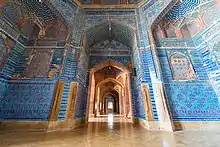 The mosque's tiles represent a direct influence of the Timurid style.[1] The mosque employs Cobalt blue, turqoise, manganese violet, and white tiles.
