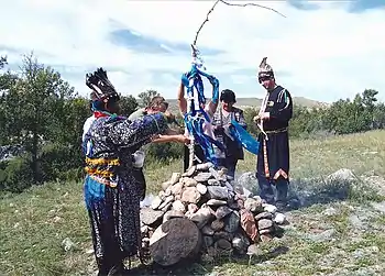 - Karagas shamanism is affected by Abakan-Turkic and Buryat influence.[33] Among the various Soyot cultures, the central Soyot groups, keeping cattle and horses, show Khalkha Mongol phenomena in their shamanism,[34] the shamanism of Western Soyots, living on the steppe, is similar to that of Altai Turkic peoples.[35] A shaman story narrates contacts between Soyots and Abakan Turkic peoples in a mythical form.[36]