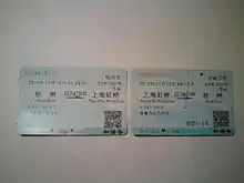 Tickets for the Shanghai-Hangzhou high-speed railway