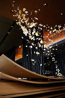 Originally established in 1830, Nadaman originated in Osaka and has served royalty and world leaders.[13] The restaurant 29th floor of Shangri-La Hotel, Tokyo, was designed by Hong Kong architect Andre Fu,[14] drawing from nature with bamboo-shaped partitions and ceramic tiles with cherry-blossom motifs. Head chef Takahiko Yoshida follows the kaiseki (multi course) tradition.[13]