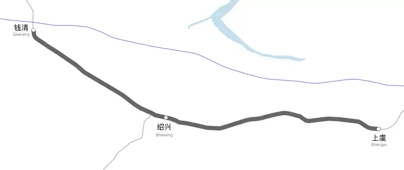 Between 18 April 2018 and 29 September 2018, the train does not stop at any station except Shaoxing and Shangyu stations.[2] On 29 September 2018, a third station Qianqing was open for operation and extending the line with an additional 20 km. On 1 July 2020, the line extended to Hangzhou South.