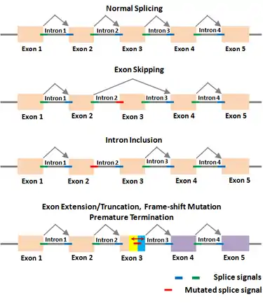 Numerous diseases have been caused by cryptic splice site mutations or usage of cryptic splice sites due to the mutations in authentic splice sites.[84][85][86][87][88]