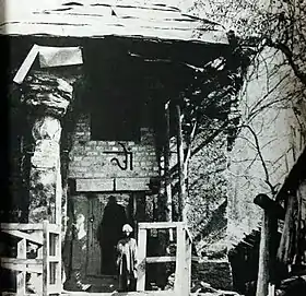 During Mughal and Afghan rule, Neelum Valley was ruled by Muslim chiefs of the Bomba tribe, and the pilgrimage decreased in importance. It regained its stead during Dogra rule, when Maharaja Gulab Singh repaired the temple and dedicated a monthly stipend to the Gautheng Brahmans who claimed the hereditary guardianship of the temple.[32] Since then, a thriving Kashmiri Pandit community lived in the vicinity of the Sharada Peeth teerth (or pilgrimage). These included priests and traders, as well as saints and their disciples. As a religious ritual, Kashmiri Pandit theologians across Kashmir would place their manuscripts in covered platters before idols of the goddess Sharada, to obtain her blessings. They believed that the goddess would convey approval of the pages of writings by leaving them undisturbed, and disapproval by leaving the pages ruffled. In addition, an annual fair would be held at Shardi village, with pilgrims travelling through Kupwara (in present-day Indian-administered Jammu and Kashmir), in worship of the goddess Sharada.[48] Kashmiri Pandits believe that the Sharada pilgrimage parallels Shandilya's journey, and that the act of bathing in the confluence of the Neelum River and Madhumati stream cleanses the pilgrim of their sins.[25] In 1947, the Kashmiri saint Swami Nand Lal Ji moved some of the stone idols to Tikker in Kupwara. Some of those were subsequently moved to Devibal in Baramulla.[49] The temple fell into disuse following the Indo-Pakistani War of 1947–1948, which split the princely state of Kashmir into the Pakistani-administered territory of Azad Kashmir, and the Indian-administered territory of Jammu and Kashmir. This caused large numbers of Kashmiri Pandits to migrate out of Shardi to Indian Jammu and Kashmir. Since then, Kashmiri Pandits unable to visit the shrine have created "substitutes" for the pilgrimage in places like Srinagar, Bandipore, and Gush in Indian Jammu and Kashmir.[50]