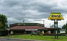 Shari's Cafe & Pies, originally known as Shari's Restaurants, is a chain of family dining restaurants in the western United States.[3] Restaurants are open 365 days a year, many (but not all) are also open 24 hours.[4] The franchise's original restaurant was opened in Hermiston, Oregon in 1978.[3] As of August 2017, the company operated 95 locations in the states of Oregon, Washington, California, Idaho, Nebraska and Wyoming.[1][5] Shari's features a distinctive hexagonal building design for most of its restaurant locations. Its corporate offices are located in the Progress area of Beaverton, Oregon.