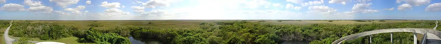 Shark Valley is a geological depression at the head of the Shark River Slough in far western Miami-Dade County, Florida, United States. It is currently part of Everglades National Park. Shark Valley empties into Shark River in the Ten Thousand Islands of Monroe County.[1] Shark Valley characteristically includes sawgrass prairie that floods during the rainy season, hence the name "river of grass"—Pa-Hay-Okee, from the Mikasuki language—for such marshes in the Everglades.[2] Shark Valley features a Visitor Center with educational displays, a park video, an underwater camera and informational brochures. The entrance to Shark Valley is located along Tamiami Trail (US 41) near the Miami-Dade–Collier County line.[3]