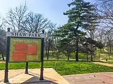 Shaw Park was founded in 1935 by the Mayor Charles A. Shaw.[1] The park was dedicated in 1937 and cost $280,000, with $30,000 coming from the city of Clayton and the rest coming from the federal government. The park is west of St. Louis County District Courthouse and adjacent to Clayton High School.[2]