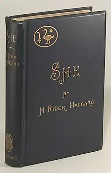 She, subtitled A History of Adventure, is a novel by the English writer H. Rider Haggard, published in book form in 1887 following serialisation in The Graphic magazine between October 1886 and January 1887. She was extraordinarily popular upon its release and has never been out of print.