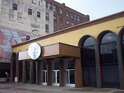 In 1934, Studio Theatre moved to a concert hall on the second floor of the Teck Theatre, until that building was converted to a movie house three years later. Studio Theatre School was incorporated with the playhouse as an educational institution in 1936 under the New York State Board of Regents. In 1937, having purchased the former Universalist Church at 305 Lafayette, the Studio Theatre was at home there for many years. In the early 1960s, the resident theatre movement was beginning, and Studio Theatre began its evolution into a professional Equity theatre under the leadership of Neal Du Brock. In a mere forty-day transformation, the former Town Casino (an important local nightclub) at 681 Main Street was transformed into the Buffalo's only not-for-profit professional regional theatre and was renamed Studio Arena Theatre in 1965. Studio Arena Theatre was a key player in the resident theater movement.[3] Eventually it moved across the street into the former Palace Burlesque Theater at 710 Main Street in 1978 and became the cornerstone of the Buffalo Theatre District.[4]