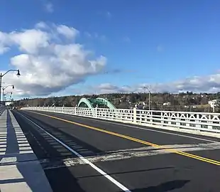 The East River Bridge was built across the Northeast Arm in 1957 to replace its predecessor. It was a 213 m (699 ft) long green arch bridge and its ribs were reinforced heavily in 1988. It was replaced by a 187 m (614 ft) long multi-span bridge of the same name which began construction in 2014 and opened fully on December 18, 2015.[9] Duncan MacMillan High School, the only school in Sheet Harbour and the only secondary school in the Sheet Harbour area, was opened in 1963. A new school is currently under construction which will serve grades primary through twelve and will be the only school in the region. Sidewalks were laid through the main downtown area and moorings were installed in the harbour in 2010 and 2017 respectively. A deep-water dock and accompanying industrial park was built in the 1990s on the western shore of the harbour. It serviced the Sable Offshore Energy Project, due to it being the closest terminal to the project, and is in close proximity to major intercontinental shipping routes. Several franchises have establishments in Sheet Harbour, including Foodland, Home Hardware and the Nova Scotia Liquor Commission. An RCMP detachment and a branch of the Halifax Public Libraries are present within the community as well, along with the aforementioned hospital and high school.
