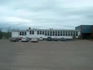 The first bank in Sheet Harbour, a branch of the Bank of Nova Scotia, was built in 1921. The establishment was moved to a new building in 1929, and again in 1959. Electrical lines were first run into the community in late 1925. A ground-wood pulp mill owned by the American Pulp and Wrapping Paper Co. of Albany, New York produced its first ground-wood pulp on October 5, 1925. Located along West River near its mouth at the head of the Northwest Arm, the mill remained in operation until it was destroyed by Hurricane Beth in 1971. The first efforts to bring a hospital to Sheet Harbour began in the mid 1940s sparked by Duncan MacMillan, a longtime physician in the area.[7] The project was given unanimous approval at subsequent meetings, and Leslie R. Fairn was enlisted as the architect, as well as John Smiley and later Robert MacDonald, as contractors. Construction began in 1947 and the Eastern Shore Memorial Hospital was opened on May 24, 1949, with a ceremony in which Premier Angus L. MacDonald officiated.[8] It was operated as an outpost hospital by the Canadian Red Cross until 1954, after which the local residents operated it until 1959. The hospital has been operated by the Nova Scotia Government thereafter.