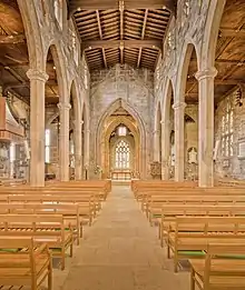 In the 1880s further reconstruction and rebuilding removed the galleries, moved the organ to the north transept to clear the chancel, and installed new oak pews.[10] The north and south transepts and west end were extended. A screen was constructed by local craftsmen for the Shrewsbury Chapel but was modified and moved to the north aisle in the 1900s.[10][11] During later restoration work in 2013, it was discovered that a number of the Shrewsbury coffins were missing from the crypt.[12]