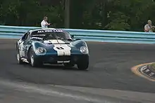 The Shelby Daytona Coupe (also referred to as the Shelby Daytona Cobra Coupe) is an American sports-coupé. It is related to the Shelby Cobra roadster, loosely based on its chassis and drive-train developed and built as an advanced evolution. It was engineered and purpose built for auto racing, specifically to take on Ferrari and its 250 GTO in the GT class. The original project had six Shelby Daytona Coupes built for racing purposes between 1964 and 1965, as Carroll Shelby was reassigned to the Ford GT40 project to compete at the 24 Hours of Le Mans, again to beat Ferrari in the highest level prototype class. With the Shelby Daytona, Shelby became the first American constructor to win a title on the international scene in the FIA International Championship for GT Manufacturers in 1965. The Shelby Daytona has recently been chosen for historic preservation as a significant vehicle in the history of auto racing.[2]