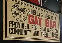 Shelly's Leg was the first openly operated gay bar in Seattle. It operated from 1973 until sometime circa 1978.