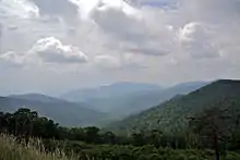The park is located along the western part of the Blue Ridge anticlinorium, a regional-scale Paleozoic structure at the eastern margin of the Appalachian fold and thrust belt. Rocks within the park were folded, faulted, distorted, and metamorphosed during the late Paleozoic Alleghanian orogeny (325 to 260 million years ago).[7] The rugged topography of Blue Ridge Mountains is a result of differential erosion during the Cenozoic, although some post-Paleozoic tectonic activity occurred in the region.[8][9]