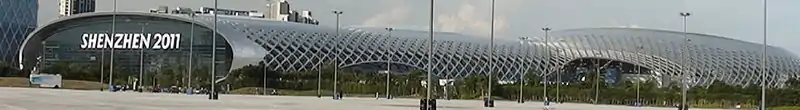 Shenzhen Bay Sports Center (Simplified Chinese: 深圳湾体育中心), nicknamed Spring Cocoon (Chinese: 春茧) for its shape, is a multiuse stadium in Shenzhen, China. It is used mostly for table tennis, swimming and soccer competitions. The stadium is known for hosting the annual RoboMaster Robotics Competition since 2015, as well as the opening ceremony and numerous competitions of the 2011 Summer Universiade. The stadium has a capacity of 20,000 spectators and the arena seats 13,000 more. The Sports Center also hosts regular concerts and has been used as a military staging area.