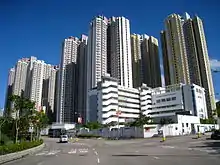 Shek Wu Hui (石湖墟) used to be the marketplace of the Sheung Shui area, before the development of Sheung Shui Town. Bounded by Lung Sum Avenue (龍琛路), San Fung Avenue and Jockey Club Road, it was the main market in the Sheung Shui area from the 1930s onwards.[1] Today some private residences can be found towering over the old flats in the hui (market). The majority of the buildings still standing were repaired in the 1950s.