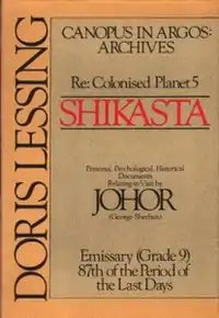 Re: Colonised Planet 5, Shikasta (often shortened to Shikasta) is a 1979 science fiction novel by Doris Lessing, and is the first book in her five-book Canopus in Argos series. It was first published in the United States in October 1979 by Alfred A. Knopf, and in the United Kingdom in November 1979 by Jonathan Cape. Shikasta is also the name of the fictional planet featured in the novel.