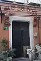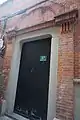 The defining characteristic of a shikumen building is the prominent main gate - which also gives rise to the name "shikumen". Typically, this gate is located on the central axis of each dwelling, with twin doors made of heavy wood, painted glossy black. Typical width is around 1.4 metres, with a height of around 2.8 metres. The doors usually possess brass or iron knockers.[7] The original documented name for such buildings was "shigumen" (石箍門), which in Shanghainese Wu meant "gate framed with stone", but over time corrupted into the similar-sounding "shikumen".[4] Each individual dwelling displays typical characteristics of traditional Jiangnan architecture, while the layout of the development as a whole is adopted from Western terrace houses.