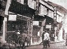 This style of housing originally developed when local developers adapted Western-style terrace houses to Chinese conditions.[5] Migrant labourers from surrounding provinces entered Shanghai in large numbers with the establishment of Shanghai as a treaty port in 1843. The 1853 Small Swords Rebellion and the Taiping Revolution drove more migrants and refugees into Shanghai. With the upsurge in demand, property developers began to build a large number of residential buildings for the new Chinese residents of the city. At first, these tended to be wooden buildings that were cheap and quick to build.[6] These wooden buildings were built as terraces, and usually name with "Li" (里) as suffix. These were the first "lilong" buildings in Shanghai. Within 10 months from 1853, 800 dwellings of this type were built.[6]
