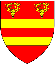 The de Langley family held the manor of Shipton, Oxfordshire, and Richard Lee in his Gleanings of Oxfordshire of 1574 states that these arms of "Gules, 2 bars or in chief 2 buck's heads cabossed of the 2nd" were then displayed in a stained glass window in St. Mary's parish church at Shipton with a tomb under it. The buck's heads seem to be a reference to the de Langley office of forester of Wychwood.