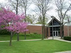By 1980, the community of Shorewood was outgrowing its small storefront library, so the search for a new site began. In June 1984, a library construction grant of $250,000 was awarded to the district. Land was donated just north of the Shorewood Plaza by George and William Michas and Chris Dragatsis for the new building.[5] The official ground-breaking of the new 15,000-square-foot (1,400 m2) facility was August 16, 1984.[6] The Shorewood-Troy Public Library opened to the public the following year. In 1992–93, a lower level of the library was completed to house the Youth Services Department and a meeting room.
