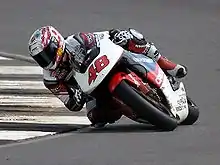 Shoya Tomizawa (富沢 祥也, Tomizawa Shōya) (10 December 1990 – 5 September 2010) was a Japanese motorcycle racer. After a successful career in the All Japan Road Race Championship,[1] he switched to MotoGP and competed in the 250cc class during 2009.[2] In the 2010 season he rode in the newly created Moto2 class. Tomizawa won the first race of the new class, at Losail in Qatar, winning by nearly five seconds from Alex Debón and Jules Cluzel.[3] Tomizawa died after sustaining cranial, thoracic and abdominal trauma at the San Marino Grand Prix.[4]
