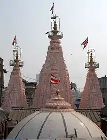 ![]() The Three Spires and dome of the Sabha Mandap atop the temple | |