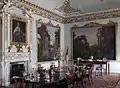 The state rooms at Shugborough Hall include The State Dining Room, The Red Drawing Room, The Library, The Saloon, The Verandah Room, The Anson Room and The State Bedroom. These contain some of the most opulent and highly decorated interiors in the hall.[9]