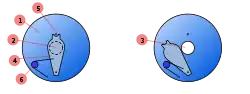A diaphragm or leaf[2] shutter (as distinct from the simple leaf shutter above) consists of a number of thin blades which briefly uncover the camera aperture to make the exposure. The blades slide over each other in a way which creates a circular aperture which enlarges as quickly as possible to uncover the whole lens, stays open for the required time, then closes in the same way.[3] The larger the number of blades, the more accurately circular is the aperture. Flash synchronization is easily achieved with a pair of contacts that close when the shutter is fully open.