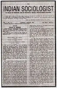 In 1905, Shyamji focused his activity as a political propagandist and organiser for the complete independence of India. Shyamji made his debut in Indian politics by publishing the first issue of his English monthly, The Indian Sociologist, an organ and of political, social and religious reform. This was an assertive, ideological monthly aimed at inspiring mass opposition to British rule, which stimulated many intellectuals to fight for the independence of India.