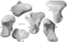 | Sibirotitan astrosacralis metatarsal I, PM TGU 16/0−8, in multiple views | |