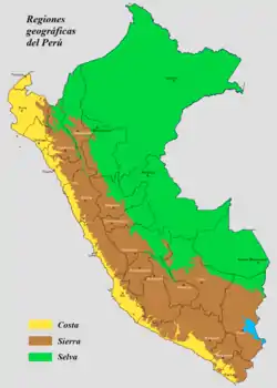 ![]() Geographic map of Peru. In brown, you can see the Sierra or the Peruvian highlands, where the events of this campaign took place. | |||||||