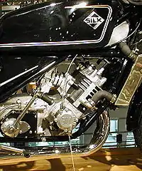 The Silk 700S was launched in 1975 and featured a new engine based on the two stroke engine from the Scott Flying Squirrel in a specially designed steel tubular frame made by Spondon of Derbyshire,[2] who also made the forks.[3] At a cost of £1355 it was more expensive than most other production motorcycles of the time.[4] Right from the start the Silk 700S featured state of the art electronic ignition and had a power-to-weight ratio combined with excellent handling that enabled it to compete with some of the best road bikes of the time.[1] Top speed was an impressive 110 mph. The bike did not have an electric start; the kick-starting technique took some practice.[5]