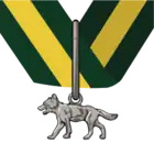 The Silver Wolf is the highest award made by The Scout Association "for services of the most exceptional character." It is an unrestricted gift of the Chief Scout. The award consists of a Silver Wolf suspended from a dark green and yellow neck ribbon.