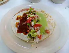 ![]() A sincronizada made with ham, Oaxaca cheese and topped with salsa and pico de gallo | |