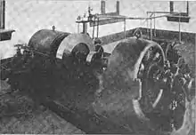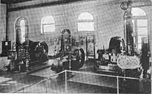 In the early years, steam engines were used as prime movers of generators. An installation at St. Louis Municipal Electric Power Plant in the 1900s was an example of using steam engines with single-phase generators. The St. Louis plant used compound steam engine to drive a 100 kW single-phase generator which produced current at rated power of 1,150 volts.[13]