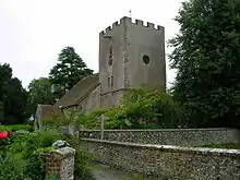 The Anglican parish church has Anglo-Saxon nave walls and massive square tower. The aisles were added later. This was a hundredal church, the central church of the Hundred of Singleton, a Saxon administrative grouping of parishes. The tower has three Saxon windows and a Saxon doorway leading into thin air high up in the nave, showing that there was once an upper room above the nave.[6] It is likely that the priests for the churches in the hundred would have lived in this room. The Saxon tower arch was rebuilt in the twelfth or thirteenth century with a pointed arch. The pews are from the Tudor period. The church is a Grade I listed building.[7]