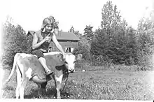 In 1973, she moved to Montmartre, in Paris, to live with her companion Jacques Blank, also a painter, whom she met in Norway.[1][2] While living in Paris, she showcased numerous exhibitions, as well as elsewhere in the world. Sini and Jacques’ everyday life took place at the Place du Tertre in Montmartre where they painted and sold their artwork. In 1980, Sini Manninen received a grant from the Finnish Foundation to attend the Cité internationale des arts[3] in Paris. That same year their first child was born, Solene, while their second child, Mikko was born shortly thereafter in 1982. Following the death of Jacques' father, Lucien Blank, in 1988, the family decided to seek a life conducive to the development of their children and their art.
