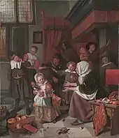After the successful revolt of the largely Protestant northern provinces of the Low Countries against the rule of Roman Catholic king Philip II of Spain, the new Calvinist regents, ministers and clericals prohibited celebration of Saint Nicholas. The newly independent Dutch Republic officially became a Protestant country and abolished public Catholic celebrations. Nevertheless, the Saint Nicholas feast never completely disappeared in the Netherlands. In Amsterdam, where the public Saint Nicholas festivities were very popular, main events like street markets and fairs were kept alive with persons impersonating Nicholas dressed in red clothes instead of a bishop's tabard and mitre. The Dutch government eventually tolerated private family celebrations of Saint Nicholas' Day, as can be seen on Jan Steen's painting The Feast of Saint Nicholas.