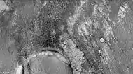 Wislicenus Crater and the Schiaparelli basin crater contains layers, also called strata. Many places on Mars show rocks arranged in layers.[3] Sometimes the layers are of different colors. Light-toned rocks on Mars have been associated with hydrated minerals like sulfates. The Mars Rover Opportunity examined such layers close-up with several instruments. Some layers are probably made up of fine particles because they seem to break up into fine dust. Other layers break up into large boulders so they are probably much harder. Basalt, a volcanic rock, is thought to in the layers that form boulders. Basalt has been identified on Mars in many places. Instruments on orbiting spacecraft have detected clay (also called phyllosilicates) in some layers. Scientists are excited about finding hydrated minerals such as sulfates and clays on Mars because they are usually formed in the presence of water.[4] Places that contain clays and/or other hydrated minerals would be good places to look for evidence of life.[5]