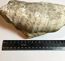 According to one study,[2] Siphonophrentis gigantea may have been a deep-water species of coral. The limestone matrix of one specimen was tested for calcium carbonate, which is made up of microfossils.[3] This would indicate that the matrix was rich in nutrients when the rock was formed, meaning it was likely in deep water where nutrients are more plentiful. Because of this, the species likely had no association with Zooxanthellae (a microorganism that has a symbiotic relationship with most extant coral),[4] and therefore was likely colorless and unable to photosynthesize.