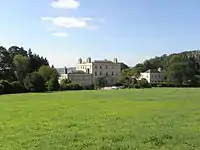 Pole's greatest legacy apart from the collation and publication of the historical researches of his ancestor Sir William Pole (d.1635), is his building between 1787 and 1789 of New Shute House, an Adam style late Palladian country house near the mediaeval and Tudor Old Shute House, Colyton, Devon, purchased by his ancestor William Pole (1515–1587). It was designed and built by Thomas Parlby, his father-in-law's partner in their civil engineering business. The house remained the principal seat of the family until the death in 1926 of the unmarried and childless Sir Frederick Arundel de la Pole, 11th Baronet (1850–1926), great-grandson of the builder. He bequeathed the entire Shute Estate to his distant young cousin Sir John Carew-Pole of Antony House in Cornwall, descended from Carolus Pole, the younger brother of the 4th Baronet. In 1926 to meet the heavy death duties the house was let and its contents were sold at auction.[10] It became a girls' school between 1933 and 1974,[11] and was then turned together with its stables and wings into eight separate apartments. The main block, converted into two vertically divided residences is in 2012 again a single residence. old Shute House was retained by Sir John Carew-Pole until 1955 when he gave it to the National Trust on the proviso that members of his wider family would remain tenants, which they did until 2008.