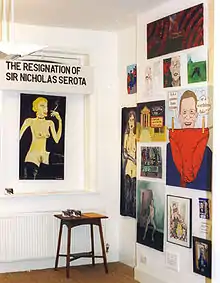 The painting was also shown at the 2004 Liverpool Biennial in The Stuckists Punk Victorian show at the Walker Art Gallery. Serota went to the show and commented that it was "lively", while standing next to Thomson's painting of him.[13] John Russell Taylor started his review of the Biennial in The Times, "Say what you will about the Stuckists, they certainly know what they don’t like. In the eccentric British group’s latest show the most explicit target is clearly the Turner Prize: the attitude can be summed up in one painting, Charles Thomson’s Sir Nicholas Serota Makes an Acquisitions Decision".[14] 160 paintings from the show, were offered as a donation to the Tate, including Thomson's painting of Serota, but "not surprisingly"[15] rejected by Serota, who said, "We do not feel that the work is of sufficient quality in terms of accomplishment, innovation or originality of thought to warrant preservation in perpetuity in the national collection."[16]