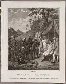 Early in 1764, Prime Minister George Grenville nominated Young and he was appointed in the same year to be President of the Commission for the Sale of Lands in the Ceded Islands. The islands included Grenada, Tobago, Dominica, and St Vincent, acquired from France as a result of the 1763 Peace of Paris.[3] In late 1764, he and his group sailed for Barbados, spending eight years away from his family during the period of 1764 to 1773, though in fact he made at least two return journeys in 1767 and 1770. James Harris reports on attending concerts at Young's residence in those years.[4] Of particular note during this time, Young employed the artist Agostino Brunias to record Young's progress and the visual context of his Commission's work. Young was also a diarist and illustrator and documented his own time in the Caribbean islands.[5] Young recorded "110 voyages of a like nature performed in the course of nine years amongst the ceded islands on the service of the Commission for the sale of lands." [6][7]