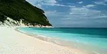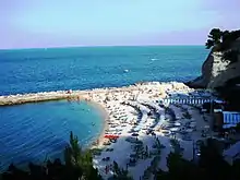 Spiaggia delle Due Sorelle is a beach of white round pebbles which can be seen through the crystal clear water. The name of this beach, which means "two sisters" is due to the twin sea stack raising from the water.