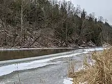 Like many creeks draining into Lake Ontario, Sixteen Mile Creek has cut a deep valley that is home to a broad range of wildlife, including whitetail deer, raccoons, foxes, opossum, and squirrels.[6] The forest contains tree species typical of the Carolinian forest habitat,[7] although since this is close to the northern limit of this zone, some are poorly represented. The total area of the drainage basin is 372 square kilometres (144 sq mi).[8]